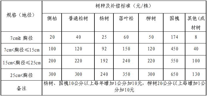 (二)木材树类(含榆、杨、柳、松、柏树等用材林)全线采用: