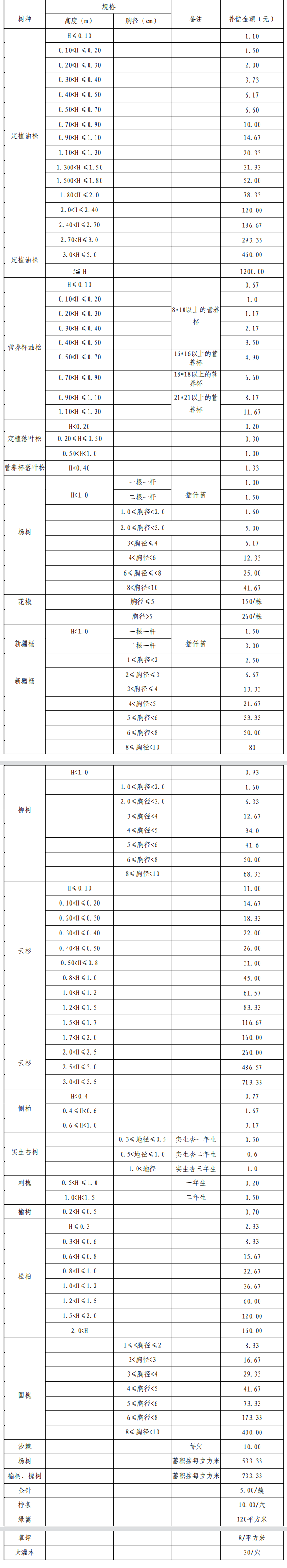 (三)苗圃、幼材类(包括榆、杨、柳、松、柏等)全线采用: