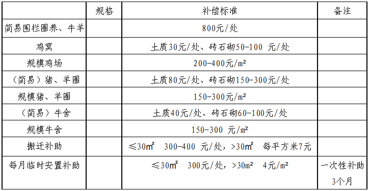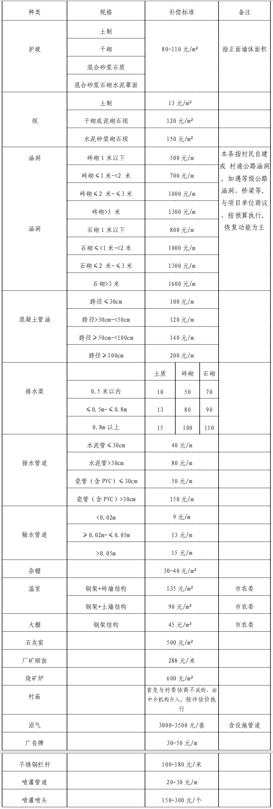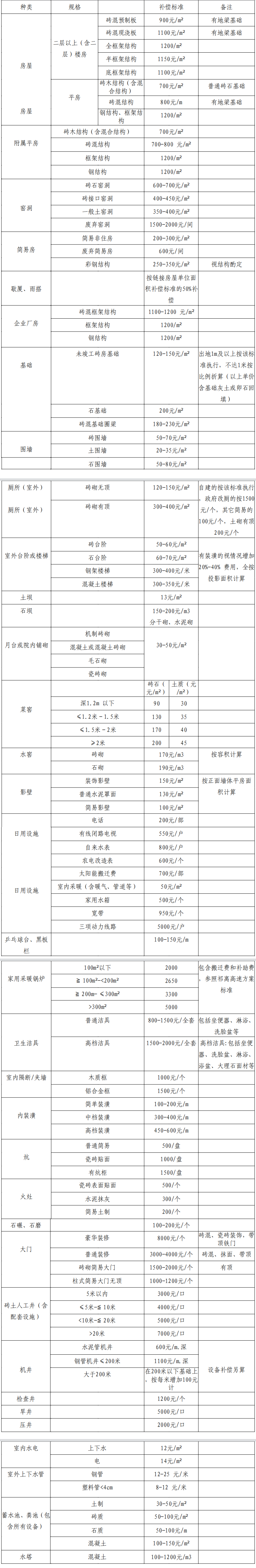 注∶1.以上补偿价格包含水、暖、电等一切设施在内。