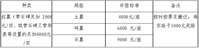 (四)坟墓类,建议全线采用以下补偿标准∶