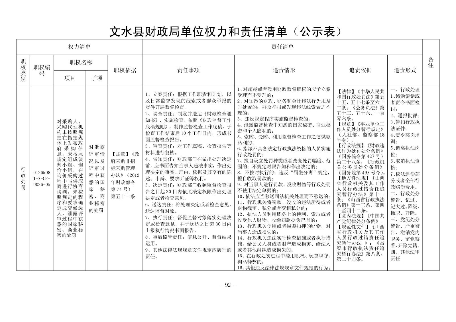 行政处罚 01265081-X-CF-0026-05 对采购人、采购代理机构未按照规定在指定媒体上发布政府采购信息,未按照规定组成谈判小组、询价小组,在询价采购过程中与供应商进行协商谈判,未按照规定的程序和要求确定成交候选人,泄露评审过程中获悉的国家秘密、商业秘密的处罚 对泄露评审情况以及评审过程中获悉的国家秘密、商业秘密的处罚