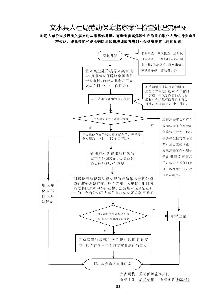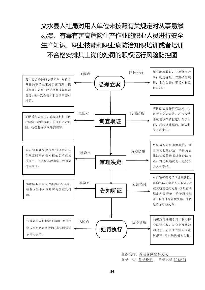 1.立案责任:符合条件的予以立案,对材料不全的,一次性告知所需材料。 2.调查责任:遵循客观事实,对应该取证的进行取证。 3.审查责任:对取证材料进行认真审查核实,需补充取证的及时补证。 4.告知责任:在规定时间内告知被处罚单位处罚理由。作出行政处罚决定前,应制作《行政处罚听证告知书》送达当事人,告知违法事实及其享有的陈述、申辩等权利。 5.决定责任:作出行政处罚决定应严格审查。制作行政处罚决定书,应载明必备内容。 6.送达责任:行政处罚决定书按法律规定的方式送达当事人。 7.执行责任:依照生效的行政处罚决定采取执行措施。 8.其他:法律法规规章规定应履行的责任。 |