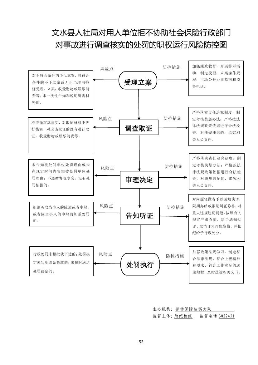 1.立案责任:符合条件的予以立案,对材料不全的,一次性告知所需材料。 2.调查责任:遵循客观事实,对应该取证的进行取证。 3.审查责任:对取证材料进行认真审查核实,需补充取证的及时补证。 4.告知责任:在规定时间内告知被处罚单位处罚理由。作出行政处罚决定前,应制作《行政处罚听证告知书》送达当事人,告知违法事实及其享有的陈述、申辩等权利。 5.决定责任:作出行政处罚决定应严格审查。制作行政处罚决定书,应载明必备内容。 6.送达责任:行政处罚决定书按法律规定的方式送达当事人。 7.执行责任:依照生效的行政处罚决定采取执行措施。 8.其他:法律法规规章规定应履行的责任。 |