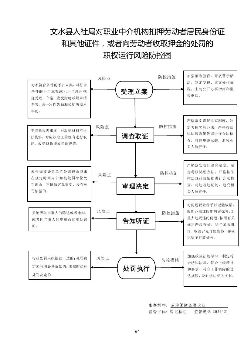 1.立案责任:符合条件的予以立案,对材料不全的,一次性告知所需材料。 2.调查责任:遵循客观事实,对应该取证的进行取证。 3.审查责任:对取证材料进行认真审查核实,需补充取证的及时补证。 4.告知责任:在规定时间内告知被处罚单位处罚理由。作出行政处罚决定前,应制作《行政处罚听证告知书》送达当事人,告知违法事实及其享有的陈述、申辩等权利。 5.决定责任:作出行政处罚决定应严格审查。制作行政处罚决定书,应载明必备内容。 6.送达责任:行政处罚决定书按法律规定的方式送达当事人。 7.执行责任:依照生效的行政处罚决定采取执行措施。 8.其他:法律法规规章规定应履行的责任。 |
