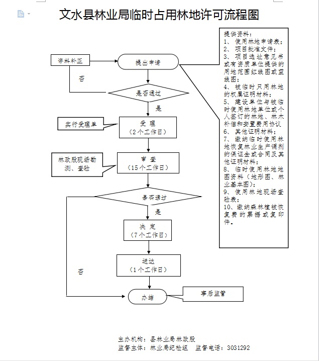 2、审查责任:按照临时征占用林地政策和规定,对书面申请材料进行审查,提出是否同意的审核意见。