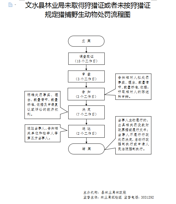 1、立案责任:发现未取得狩猎证或者未按狩猎证规定捕猎野生动物的违法行为,予以审查,决定是否立案。 |