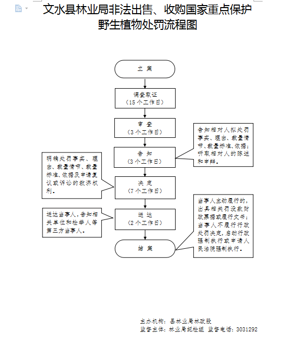 1、立案责任:发现非法出售、收购国家重点保护野生植物的违法行为,予以审查,决定是否立案。 |