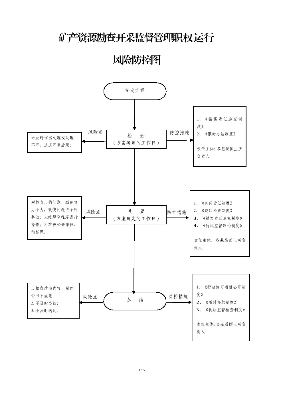 1.检查责任:地质矿产主管部门组织开展检查工作,制定检查方案,采取民查暗访、听取汇报、查阅资料、现场检查调查取证等方式. 2.处置责任:处置分整改复查、行政强制、行政处罚或移交其他部门进行处理等。 3.信息公开责任:检查结束后,向被检查对象书面反馈意见,并依规对检查情况进行公开。 |
