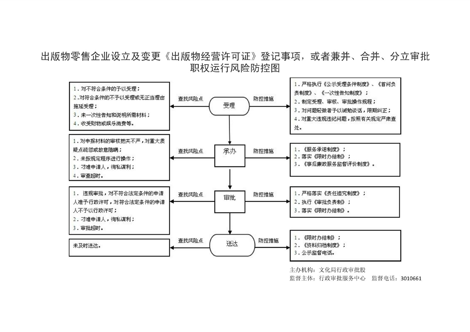 出版物零售企业设立及变更《出版物经营许可证》登记事项,或者兼并、合并、分立审批 |
