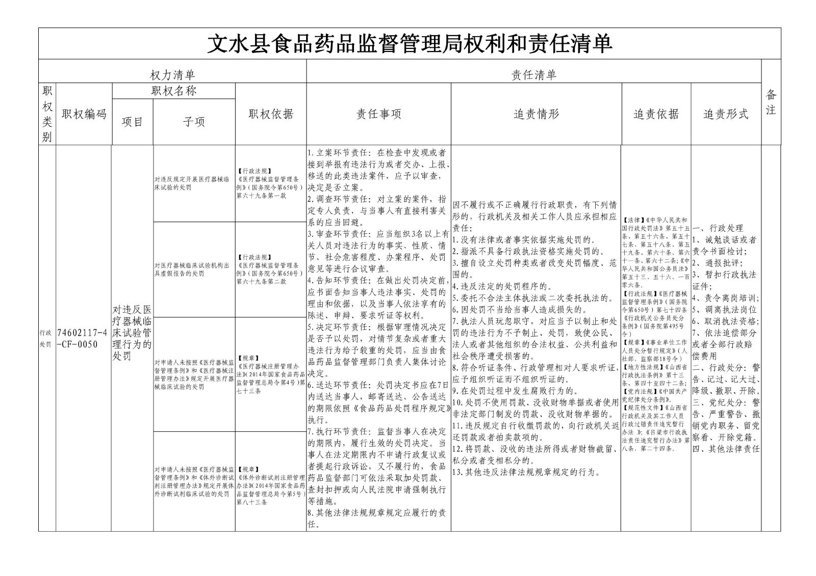 行政处罚 74602117-4-CF-0050对违反医疗器械临床试验管理行为的处罚