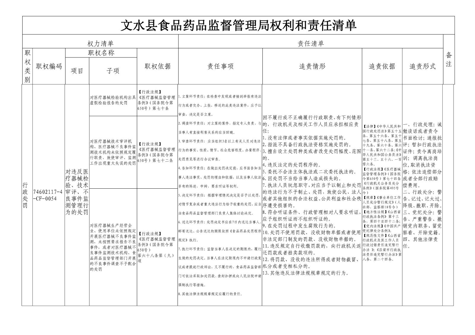 行政处罚 74602117-4-CF-0054对违反医疗器械检验、技术审评、不良事件监测管理行为的处罚