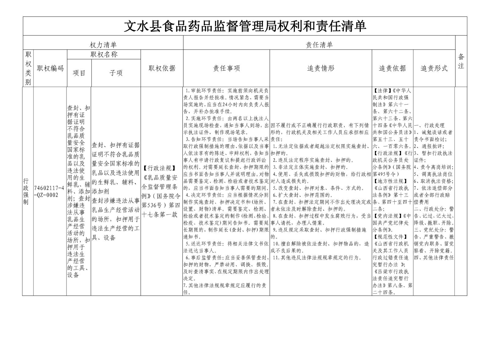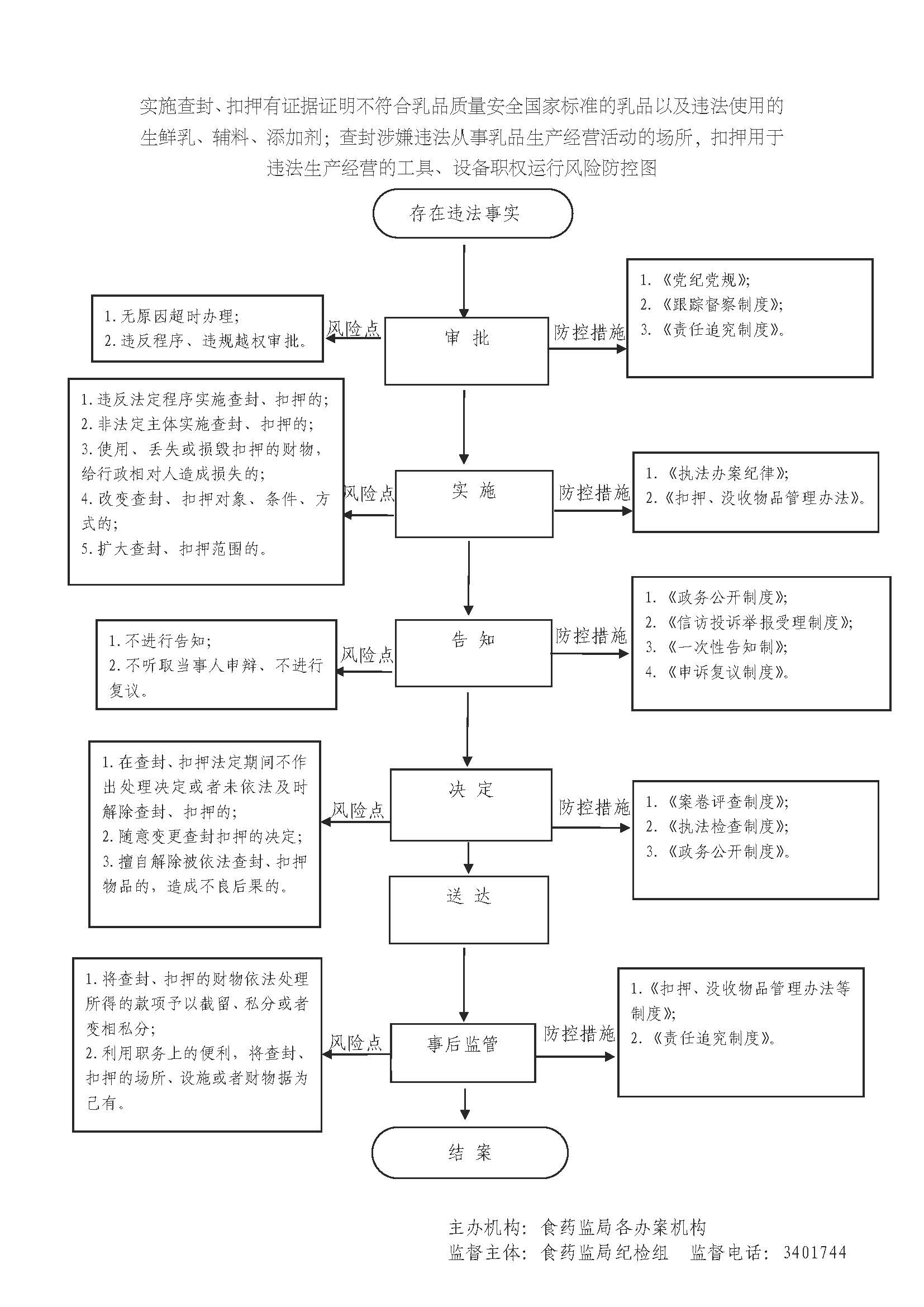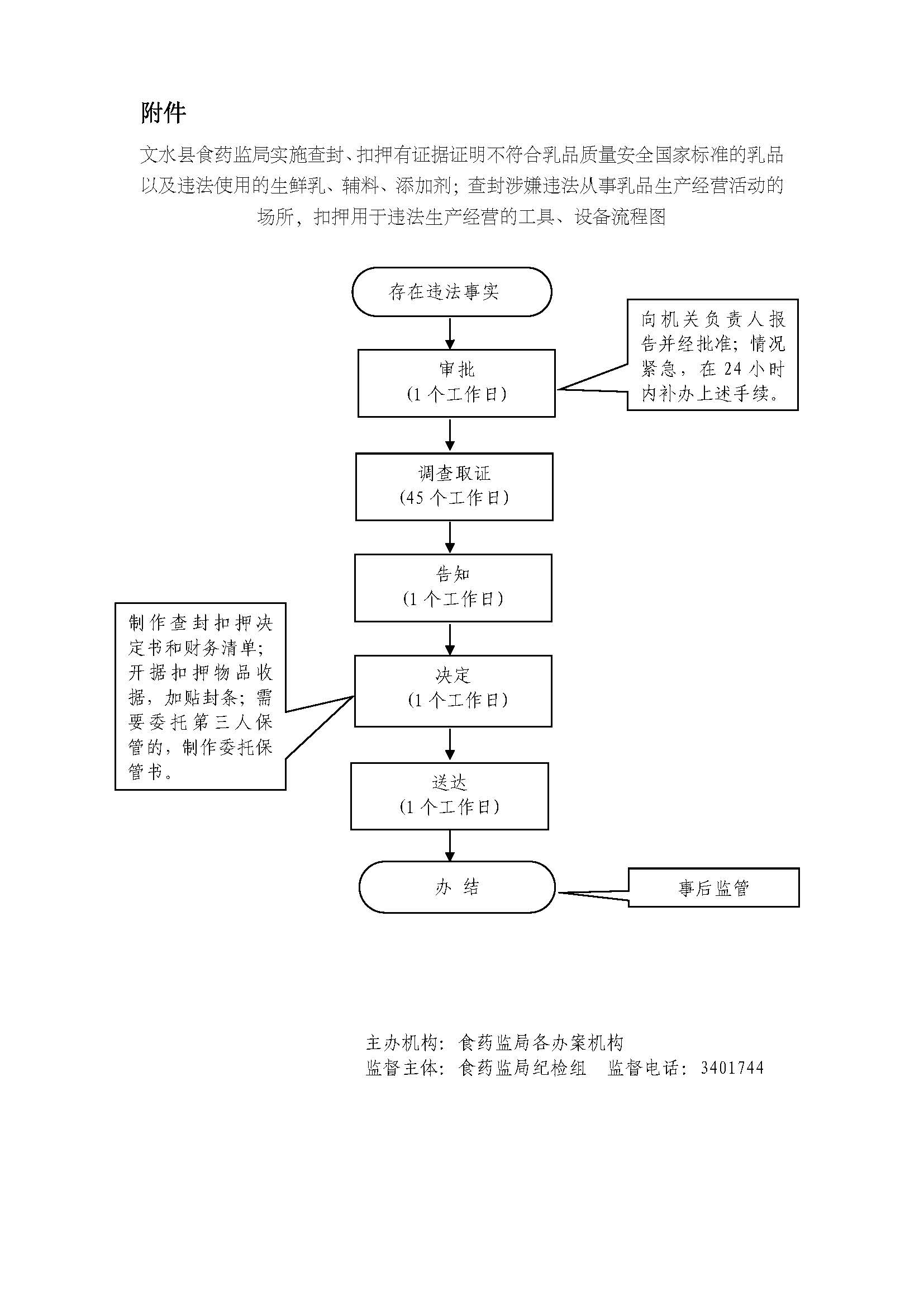 行政强制 74602117-4-QZ-0002查封、扣押有证据证明不符合乳品质量安全国家标准的乳品以及违法使用的生鲜乳、辅料、添加剂;查封涉嫌违法从事乳品生产经营活动的场所,扣押用于违法生产经营的工具、设备