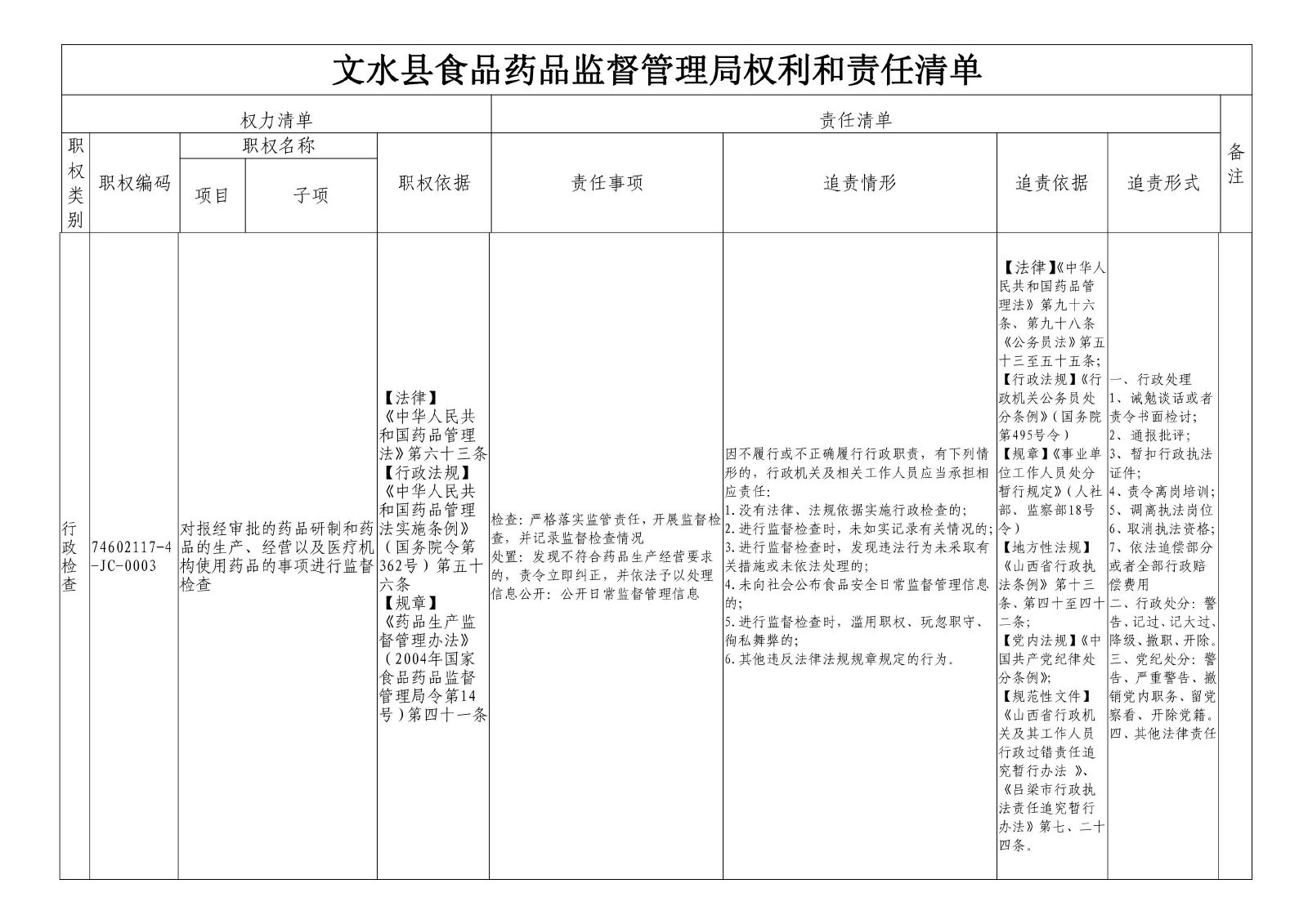 行政检查 74602117-4-JC-0003对报经审批的药品研制和药品的生产、经营以及医疗机构使用药品的事项进行监督检查