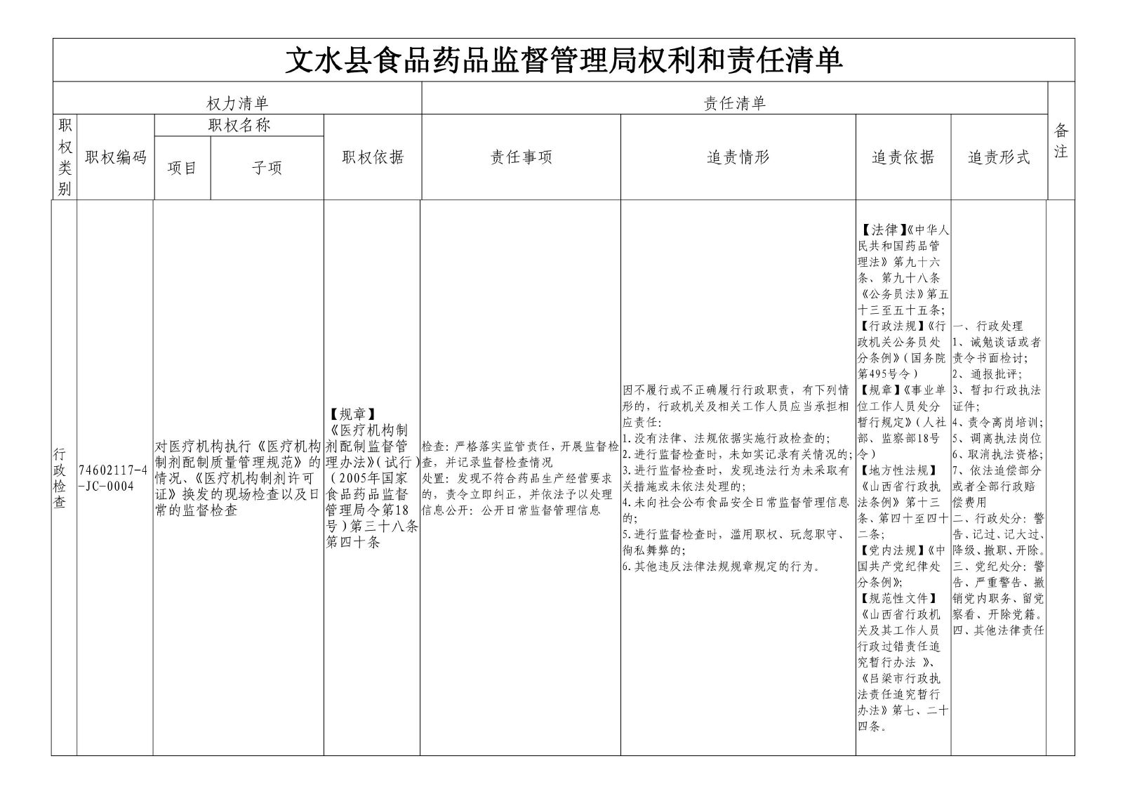 行政检查 74602117-4-JC-0004对医疗机构执行《医疗机构制剂配制质量管理规范》的情况、《医疗机构制剂许可证》换发的现场检查以及日常的监督检查