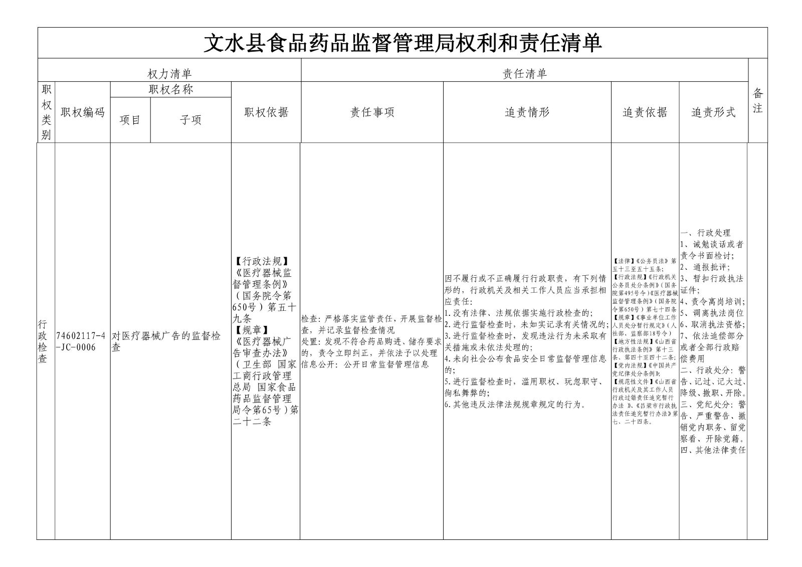行政检查 74602117-4-JC-0006对医疗器械广告的监督检查