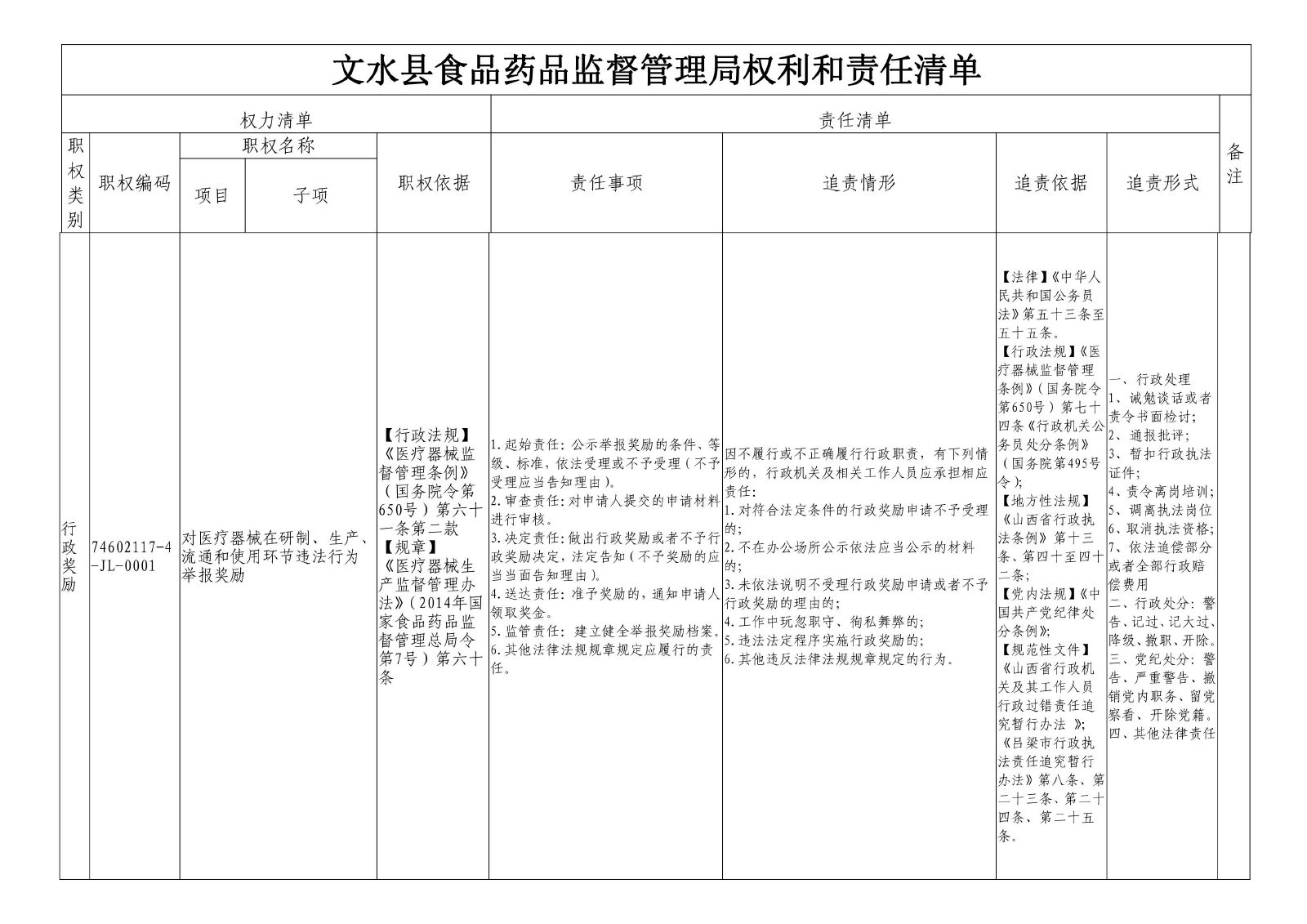 行政奖励 74602117-4-JL-0001对医疗器械在研制、生产、流通和使用环节违法行为举报奖励