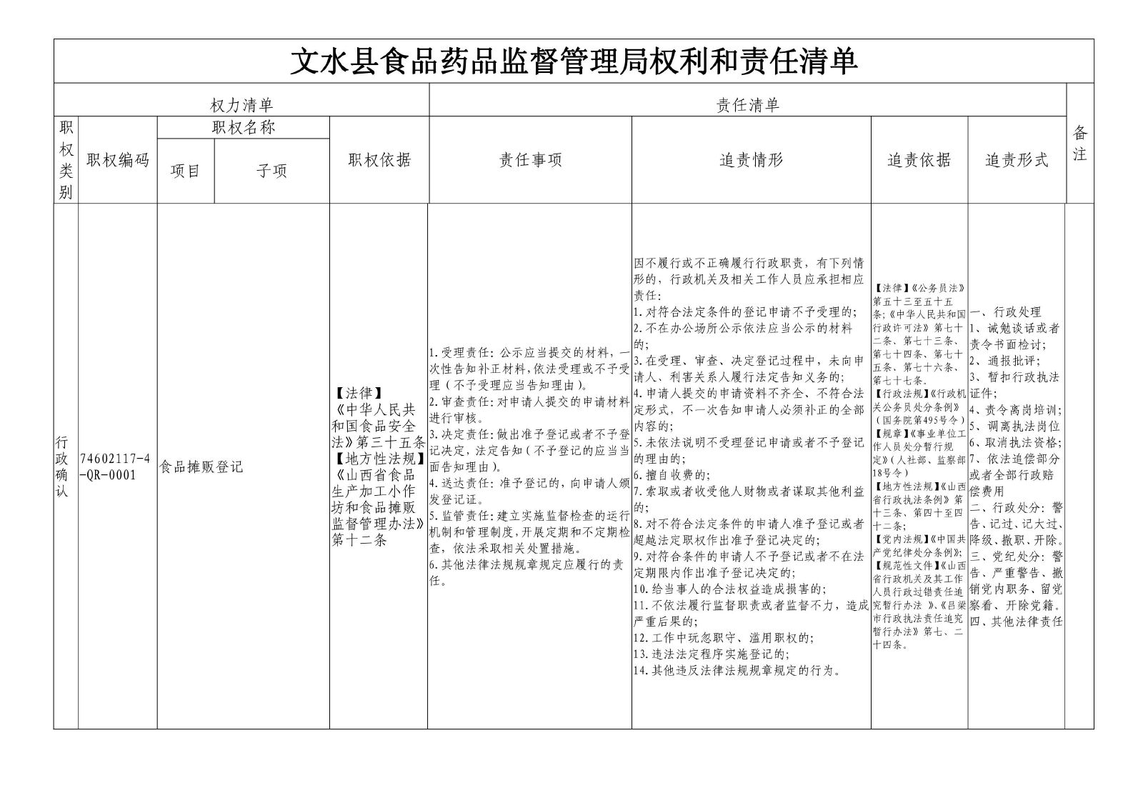 行政确认 74602117-4-QR-0001食品摊贩登记