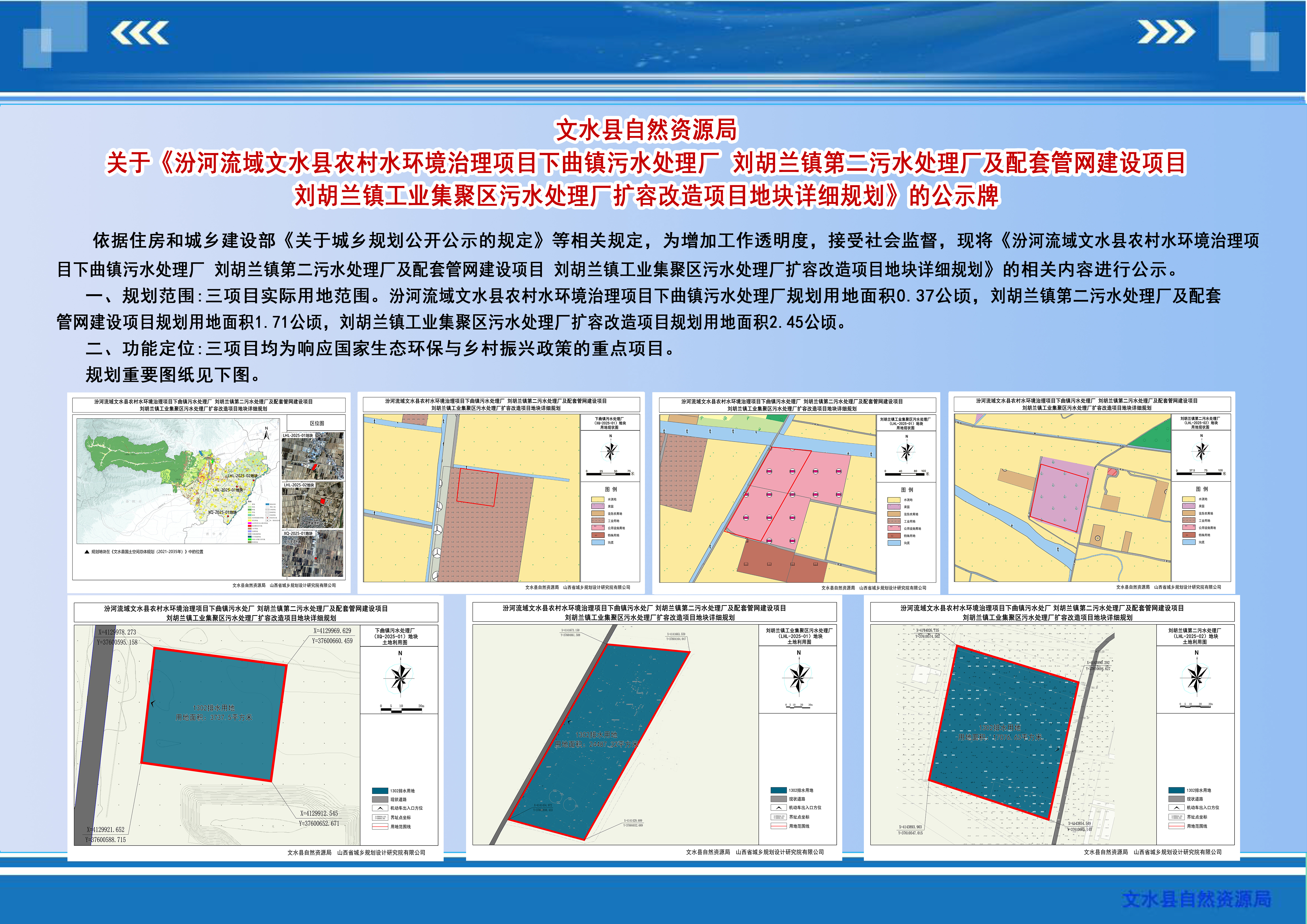 附件:1.《汾河流域文水县农村水环境治理项目下曲镇污水处理厂刘胡兰镇第二污水处理厂及配套管网建设项目刘胡兰镇工业集聚区污水处理厂扩容改造项目地块详细规划》公示牌