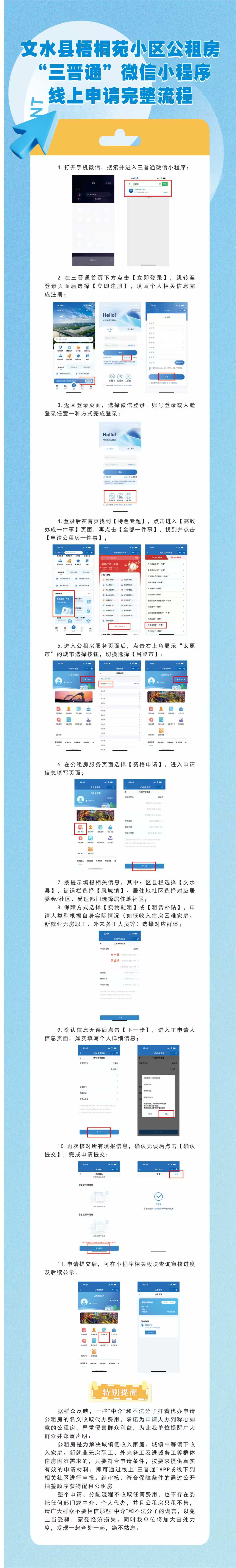 1.线上申请:申请人在手机微信小程序中搜索“三晋通”,进入三晋通小程序进行操作。完成线上申请后,需将纸质申请资料提交至居住地社区。