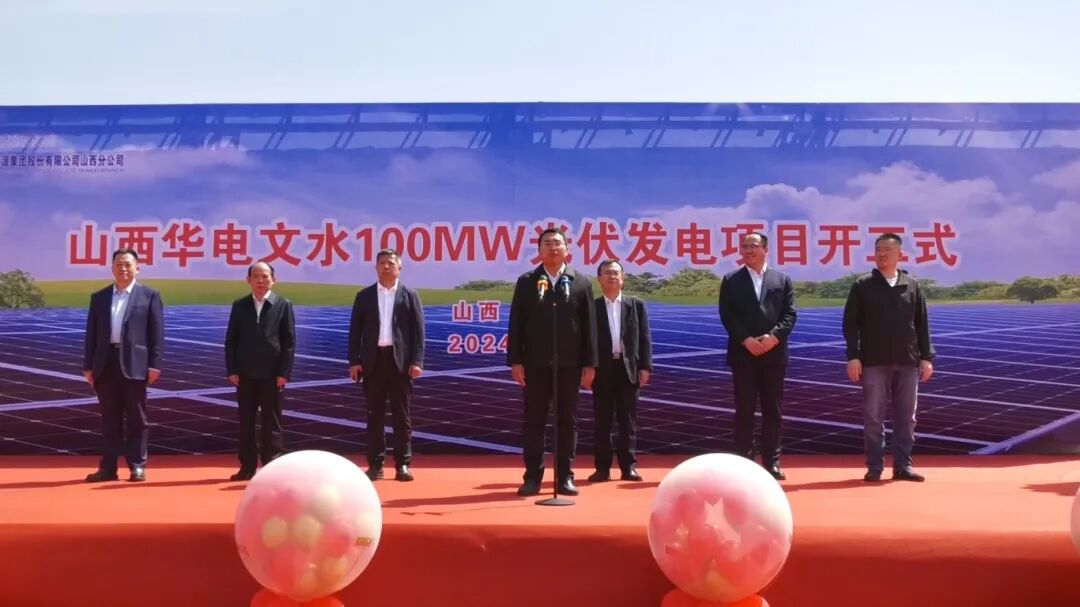 开工仪式上,成坚宣布华电文水100MW光伏发电项目开工。
