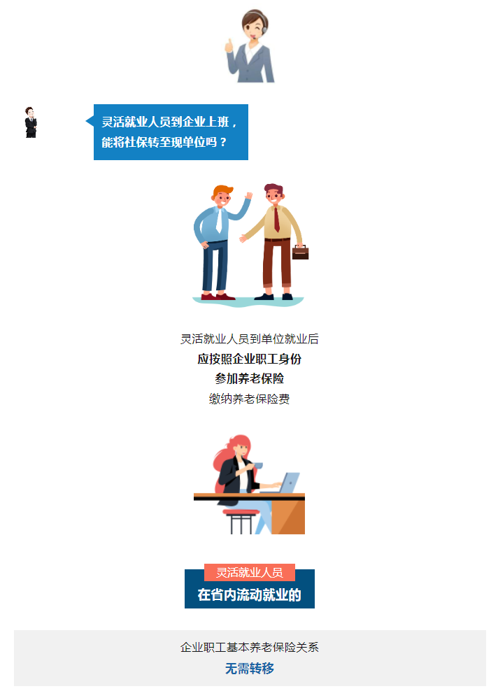 养老保险政策解读(六十五)灵活就业人员到企业上班,能将社保转至现单位吗?