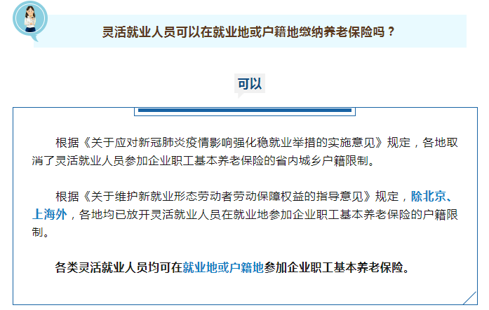 养老保险政策解读(六十九)@灵活就业人员:缴养老保险,在就业地或户籍地就可以!