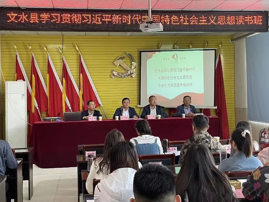 9月28日,文水县学习贯彻习近平新时代中国特色社会主义思想读书班暨专业能力素质提升培训班开班。县委常委、组织部长、党校校长刘小强出席开班仪式并作动员讲话,全县2021年第一批到村(社区)任职的56名大学生参加培训。