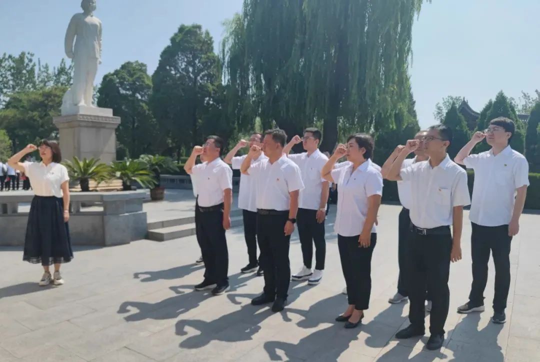 在烈士墓碑下,一行人向烈士墓碑敬献花圈,深深三鞠躬并重温了入党誓词,以此激励全体党员时刻铭记肩负的责任与使命,牢记党的宗旨。