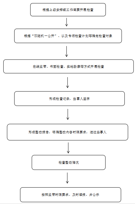 制定检查计划→实地检查、查阅资料或座谈→形成检查情况报告→提出整改意见和工作要求→公开检查结果。