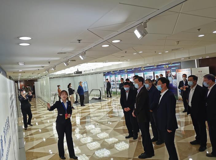 图为中国科协党组书记、常务副主席、书记处第一书记、定点扶贫领导小组组长怀进鹏,市长王立伟等领导参观中国科协吕梁定点扶贫35年主题展览。 记者 付永文 摄