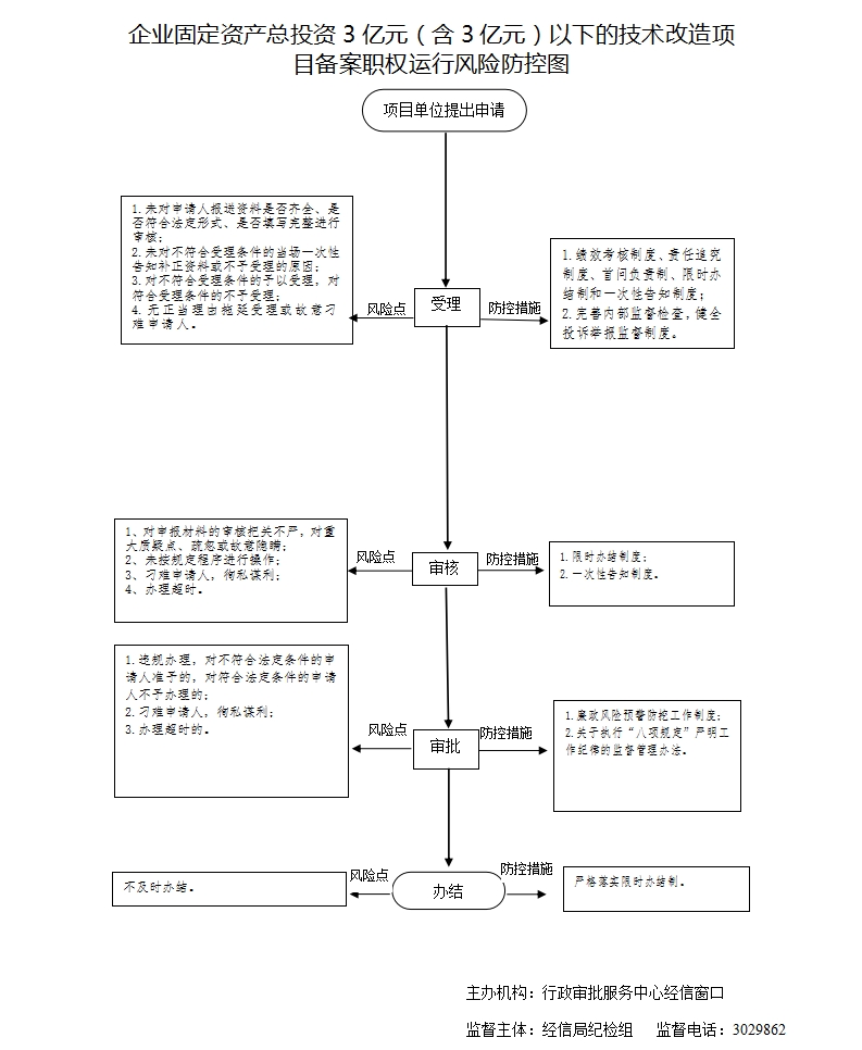 1、受理责任:公示企业固定资产总投资3亿元(含3亿元)以下的技术改造项目节能评估审查应当提交的材料,一次性告知补正材料,依法受理或不予受理(不予受理告知理由); 6、其他法律法规规章文件规定应履行的责任。 |