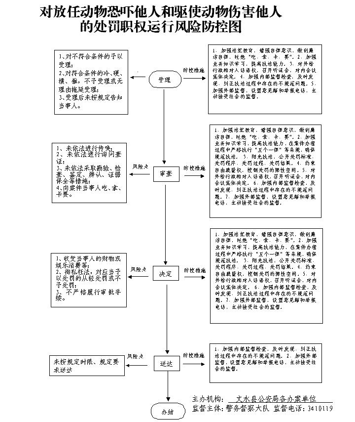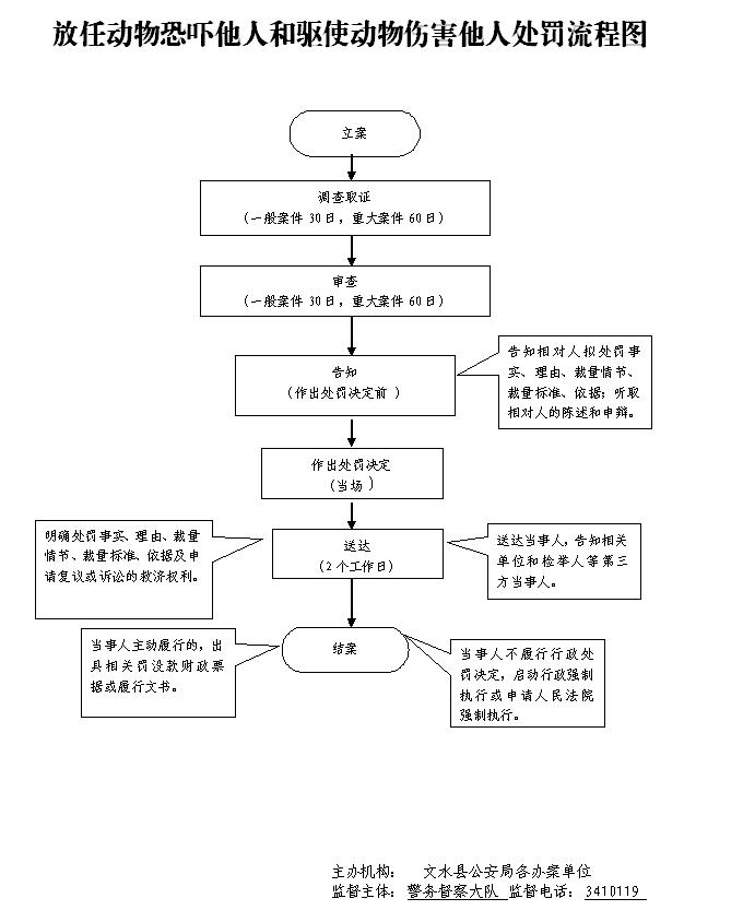 1.受理责任:报案、控告、举报、群众扭送、主动投案时,审查决定是否予以受理;2.承办责任:对受理的案件,指定专人负责,及时组织调查取证,与当事人有直接利害关系的应回避。办案人员不得少于两人,办案时应当严格遵守执法办案相关规定,允许当事人辩解陈述。办案人员应保守有关秘密。3.审批责任:对办案民警呈送的案件审批,主要对对案件违法事实、证据、调查取证程序、法律适用、处罚种类和幅度、当事人陈述等方面进行审查,提出处理意见(主要证据不足时,以适当的方式补充调查)。4.告知责任:作出行政处罚决定前,应制作《行政处罚告知书》送达当事人,告知违法事实及其享有的 陈述、申辩等权利。5.决定责任:制作行政处罚决定书,载明行政处罚告知、当事人陈述申辩或者听证情况等内容。6.送达责任:行政处罚决定书按法律规定的方式送达当事人7.执行责任:依照生效的行政处罚决定执行。8.其他法律法规规章文件规定应履行的责任。 |