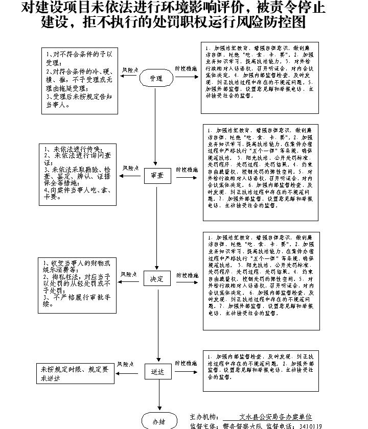 1.受理责任:报案、控告、举报、群众扭送、主动投案时,审查决定是否予以受理;2.承办责任:对受理的案件,指定专人负责,及时组织调查取证,与当事人有直接利害关系的应回避。办案人员不得少于两人,办案时应当严格遵守执法办案相关规定,允许当事人辩解陈述。办案人员应保守有关秘密。3.审批责任:对办案民警呈送的案件审批,主要对对案件违法事实、证据、调查取证程序、法律适用、处罚种类和幅度、当事人陈述等方面进行审查,提出处理意见(主要证据不足时,以适当的方式补充调查)。4.告知责任:作出行政处罚决定前,应制作《行政处罚告知书》送达当事人,告知违法事实及其享有的 陈述、申辩等权利。5.决定责任:制作行政处罚决定书,载明行政处罚告知、当事人陈述申辩或者听证情况等内容。6.送达责任:行政处罚决定书按法律规定的方式送达当事人7.执行责任:依照生效的行政处罚决定执行。8.其他法律法规规章文件规定应履行的责任。 |
