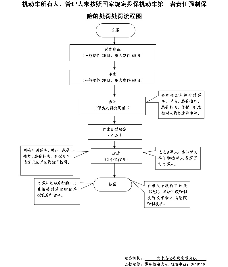 1.受理责任:报案、控告、举报、群众扭送、主动投案时,审查决定是否予以受理;2.承办责任:对受理的案件,指定专人负责,及时组织调查取证,与当事人有直接利害关系的应回避。办案人员不得少于两人,办案时应当严格遵守执法办案相关规定,允许当事人辩解陈述。办案人员应保守有关秘密。3.审批责任:对办案民警呈送的案件审批,主要对对案件违法事实、证据、调查取证程序、法律适用、处罚种类和幅度、当事人陈述等方面进行审查,提出处理意见(主要证据不足时,以适当的方式补充调查)。4.告知责任:作出行政处罚决定前,应制作《行政处罚告知书》送达当事人,告知违法事实及其享有的 陈述、申辩等权利。5.决定责任:制作行政处罚决定书,载明行政处罚告知、当事人陈述申辩或者听证情况等内容。6.送达责任:行政处罚决定书按法律规定的方式送达当事人7.执行责任:依照生效的行政处罚决定执行。8.其他法律法规规章文件规定应履行的责任。 |