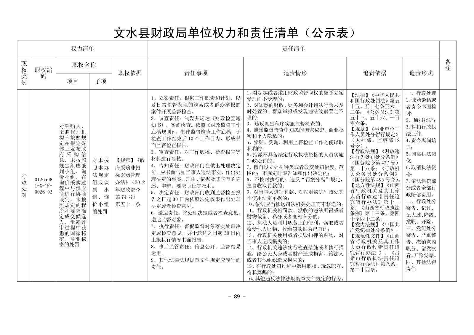 行政处罚 01265081-X-CF-0026-02 对采购人、采购代理机构未按照规定在指定媒体上发布政府采购信息,未按照规定组成谈判小组、询价小组,在询价采购过程中与供应商进行协商谈判,未按照规定的程序和要求确定成交候选人,泄露评审过程中获悉的国家秘密、商业秘密的处罚 对未按照本办法规定组成谈判小组、询价小组的处罚