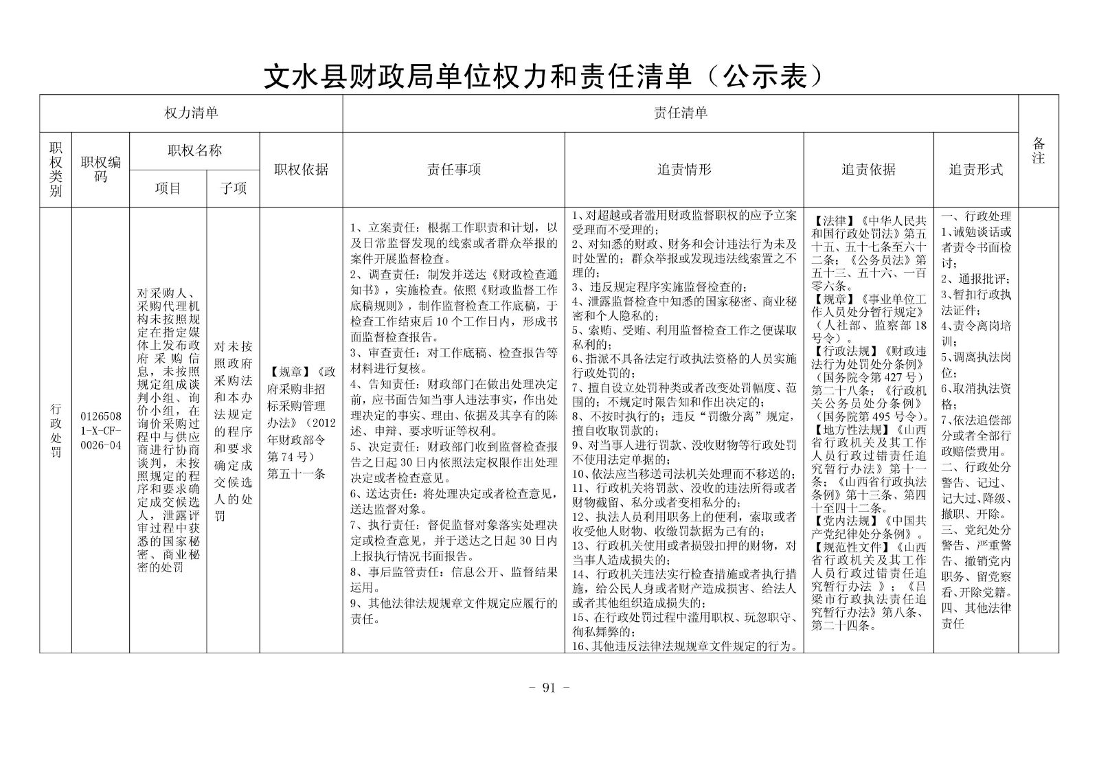 行政处罚 01265081-X-CF-0026-04 对采购人、采购代理机构未按照规定在指定媒体上发布政府采购信息,未按照规定组成谈判小组、询价小组,在询价采购过程中与供应商进行协商谈判,未按照规定的程序和要求确定成交候选人,泄露评审过程中获悉的国家秘密、商业秘密的处罚 对未按照政府采购法和本办法规定的程序和要求确定成交候选人的处罚