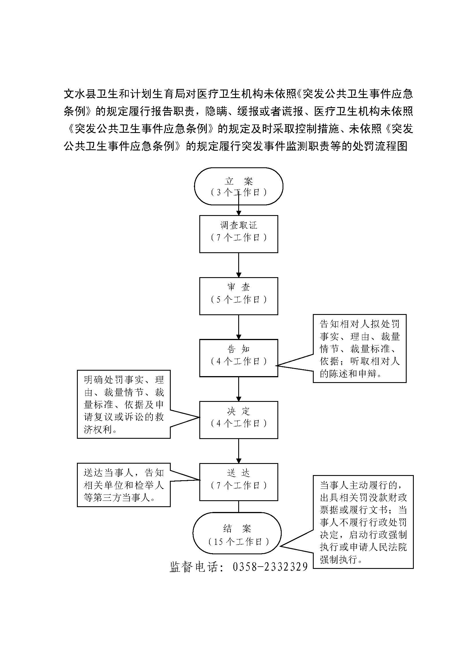 1、立案责任:发现对医疗卫生机构违反突发公共卫生事件应急管理有关规定的行为或举报案件,予以审查、决定是否立案。 2、调查责任:公共综合执法科室及乡镇卫生监督站对各自辖区内立案的案件,指定专人负责,及时组织调查取证,与当事人有直接利害关系的应到回避。执法人员不得少于两人,调查时应出示执法证件,允许当事人辩解陈述。执法人员应保守有关秘密。 3、审查责任:审理案件调查报告,对案件违法事实、证据、调查取证程序、法律适用、处罚种类和幅度、当事人陈述和身边理由等方面进行审查,提出处理意见(主要证据不足时,以适当的方式补充调查)。 4、告知责任:作出行政处罚决定前,应制作《行政处罚告知书》送达当事人,告知违法事实及其享有的 陈述、申辩等权利。符合听证规定的,制作并送达《行政处罚听证告知书》。 5、决定责任:制作行政处罚决定书,载明行政处罚告知、当事人陈述申辩或者听证情况等内容。 6、送达责任:行政处罚决定书按法律规定的方式送达当事人 7、执行责任:依照生效的行政处罚决定,采取罚款、责令停业等行政处罚措施。 8、其他法律法规规章文件规定应履行的责任。 |
