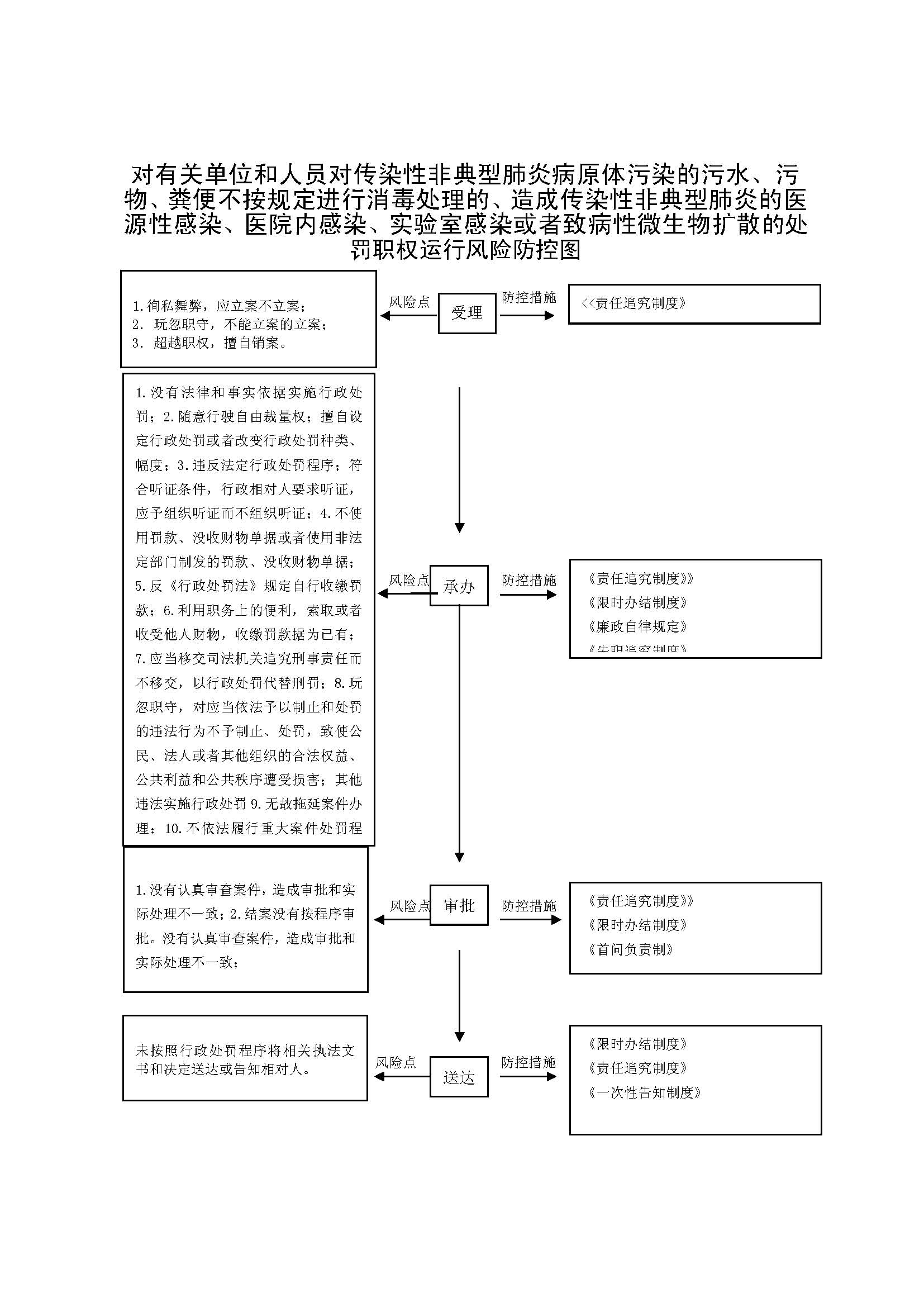 对有关单位和人员对传染性非典型肺炎病原体污染的污水、污物、粪便不按规定进行消毒处理的处罚、有关单位和人员造成传染性非典型肺炎的医源性感染、医院内感染、实验室感染或者致病性微生物扩散的处罚、有关单位和人员生产、经营、使用消毒产品、隔离防护用品等不符合规定与标准,可能造成传染病的传播、扩散或者造成传染病的传播、扩散的处罚等的处罚 |
