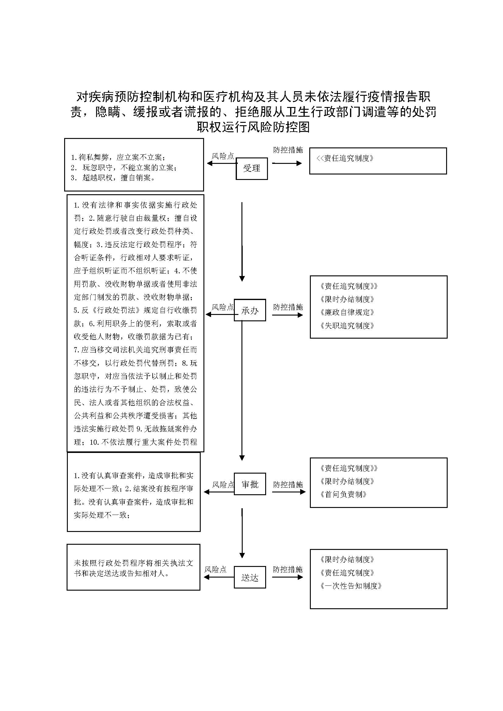 1、立案责任:发现违反传染病疫情报告的违法行为或举报案件,予以审查、决定是否立案。 2、调查责任:公共综合执法科室及乡镇卫生监督站对各自辖区内立案的案件,指定专人负责,及时组织调查取证,与当事人有直接利害关系的应到回避。执法人员不得少于两人,调查时应出示执法证件,允许当事人辩解陈述。执法人员应保守有关秘密。 3、审查责任:审理案件调查报告,对案件违法事实、证据、调查取证程序、法律适用、处罚种类和幅度、当事人陈述和身边理由等方面进行审查,提出处理意见(主要证据不足时,以适当的方式补充调查)。 4、告知责任:作出行政处罚决定前,应制作《行政处罚告知书》送达当事人,告知违法事实及其享有的 陈述、申辩等权利。符合听证规定的,制作并送达《行政处罚听证告知书》。 5、决定责任:制作行政处罚决定书,载明行政处罚告知、当事人陈述申辩或者听证情况等内容。 6、送达责任:行政处罚决定书按法律规定的方式送达当事人 7、执行责任:依照生效的行政处罚决定,采取罚款、责令停业等行政处罚措施。 8、其他法律法规规章文件规定应履行的责任。 |