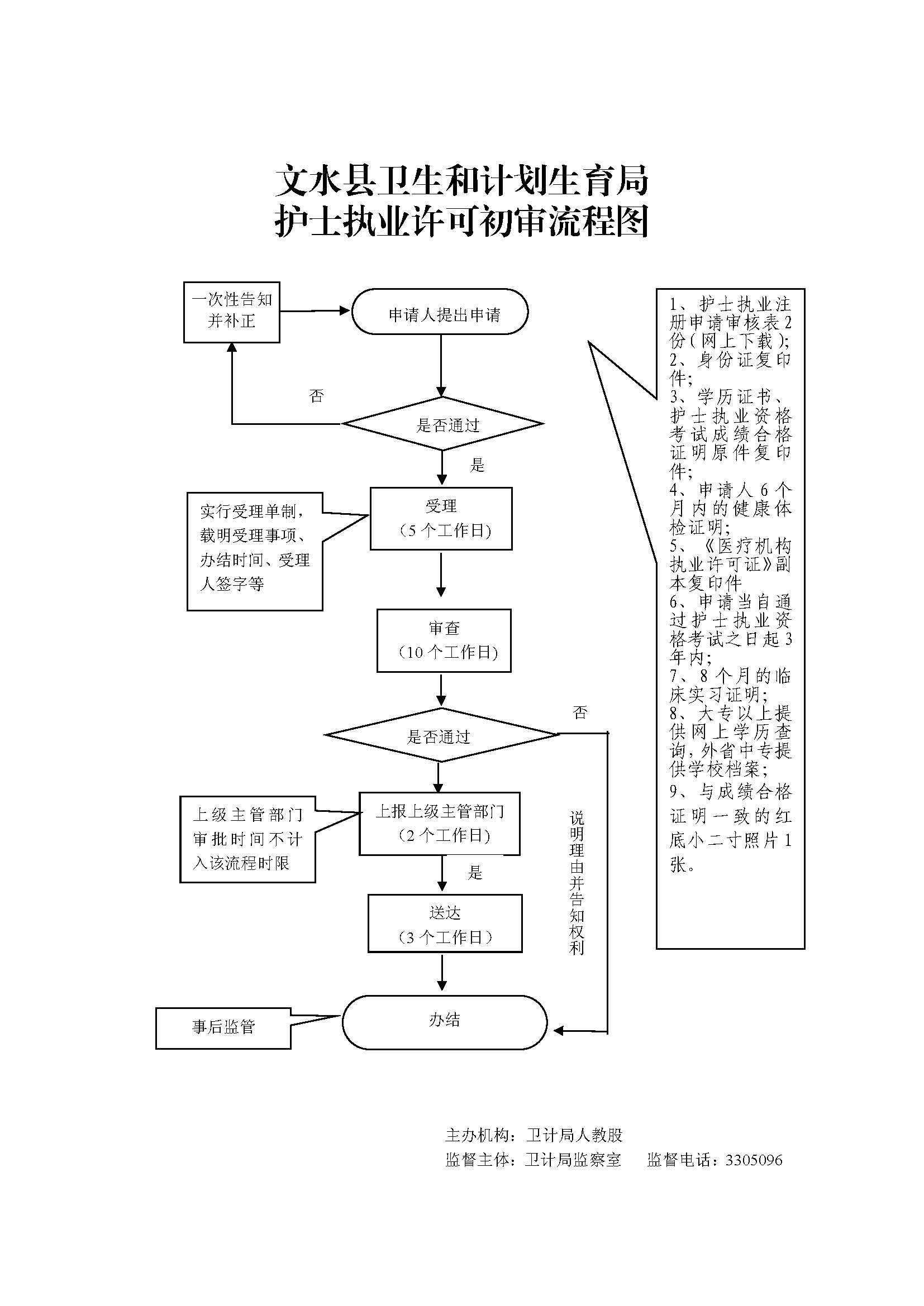1.受理环节责任:公示护士执业许可初审依法应当提交的材料和受理条件;一次性告知补齐补正材料;依法受理或不予受理(不予受理应当告知理由)。 |