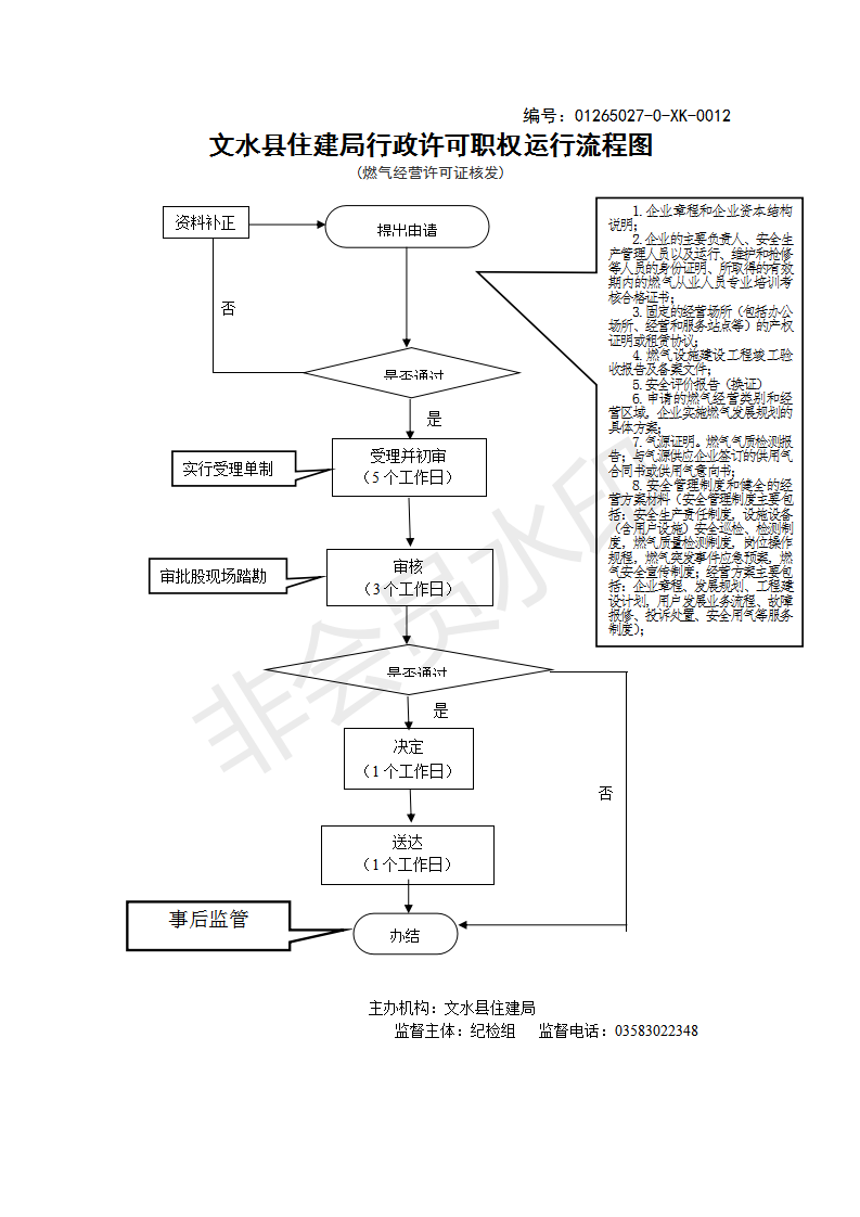 【行政法规】 《城镇燃气管理条例》(中华人民共和国国务院令第583号公布)第十五条 【规范性文件】文水县人民政府《关于落实和承接市政府继续取消和下放一批行政职权事项的通知》文政发〔20194号〕 |
