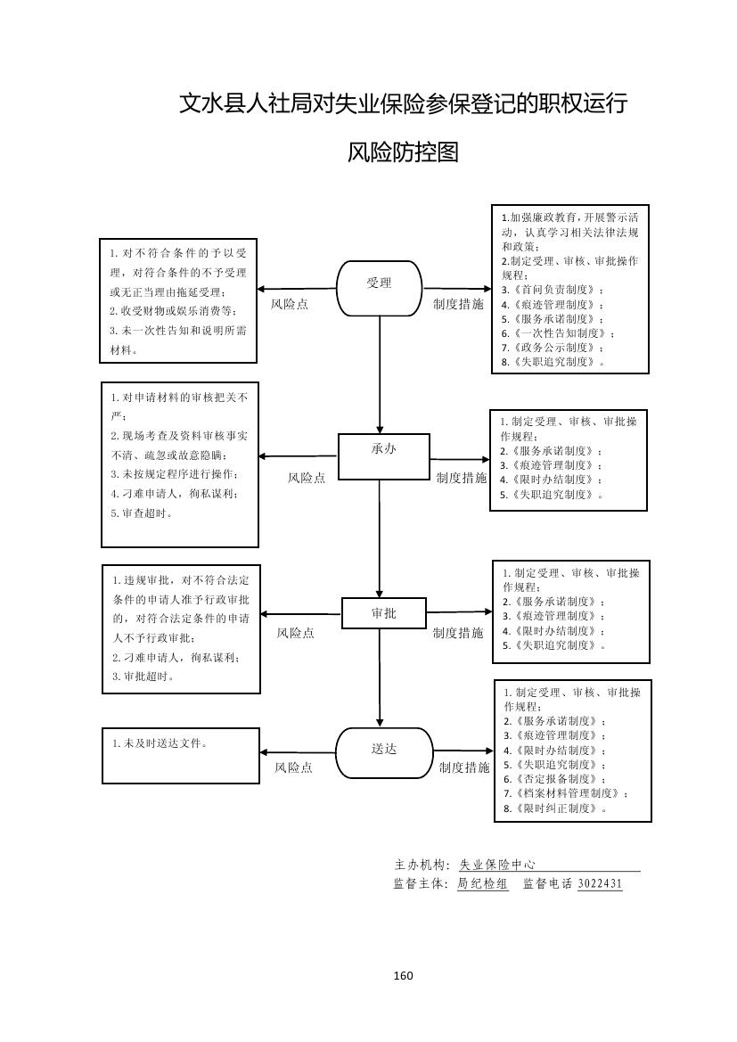 1.受理阶段责任:对符合失业保险参保登记条件的予以受理,对不符合条件的不予受理(材料不全的一次性告知和说明所需材料)。 2.承办阶段责任:按失业保险参保登记规定程序进行操作,对申报材料的审核严格把关。 3.审批阶段责任:对符合办理失业保险参保登记条件的申请人准予给以办理,对不符合条件的申请人不予办理。 4.送达阶段责任:及时送达有关资料。 |