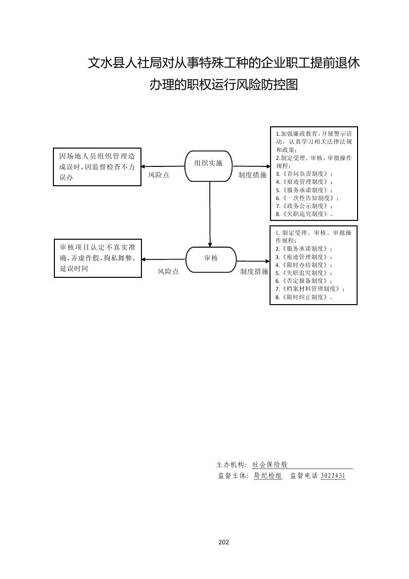 1.受理阶段责任:符合从事特殊工种的企业职工提前退休办 理条 件的予以受理,对不符合 条件的不予受理(材料不 全的,一次性告知所需材 料) 2.承办阶段责任:按规定 程序进行操作,对申报的 材料严格把关。 3.审批阶段责任:对符合 法定条件的申请人严格按 照政策办理。 4.送达阶段责任:及时送 达有关文件。 |