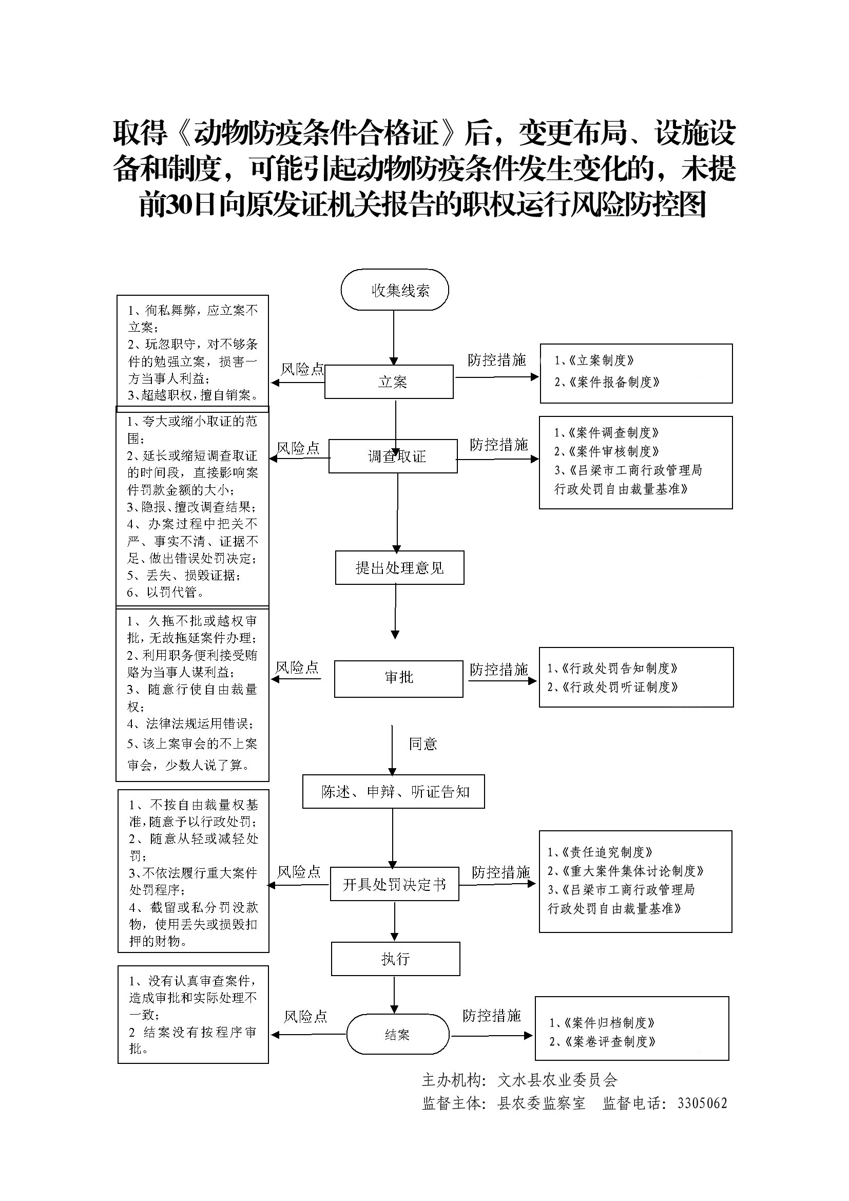 对取得《动物防疫条件合格证》后,变更布局、设施设备和制度,可能引起动物防疫条件发生变化的,未提前30日向原发证机关报告的处罚 |