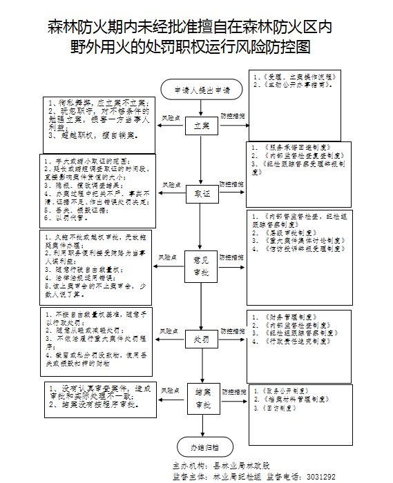 1、立案责任:发现森林防火期内未经批准擅自在森林防火区内野外用火的违法行为,予以审查,决定是否立案。 |