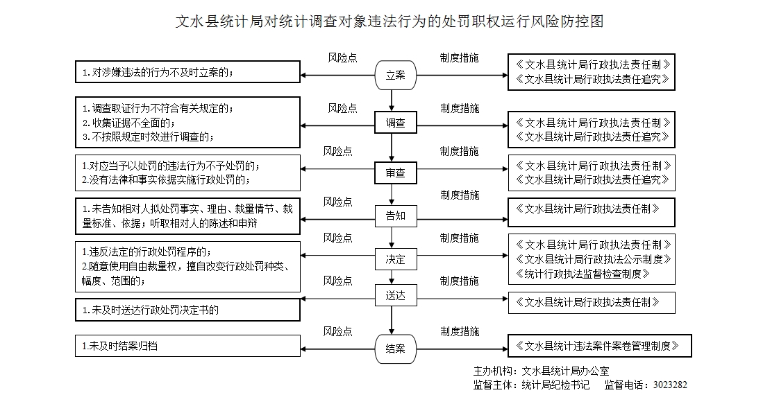 1.对巡查、举报、移送、交办的统计违法行为或案件不进行现场检查核实的;2.对统计违法行为不及时立案、及时审批的;3.统计部门对立案的案件,调查取证行为不符合有关规定的,收集证据不全面的,不按照规定时效进行调查的; 4.在对统计案件进行审查时,对应当予以处罚的违法行为不予处罚的;没有法律和事实依据实施行政处罚的;违反法定的行政处罚程序的;随意使用自由裁量权,擅自改变行政处罚种类、幅度、范围的;5.在告知行政处罚当事人时,符合听证条件、当事人要求听证,应予组织听证而不组织听证的;6.作出行政处罚决定时,违反“罚缴分离”规定,擅自收取罚款的;对当事人进行罚款不使用法定单据的;7.在统计处罚执行阶段,私分、挪用、截留、非法占用罚款的;因处罚不当给当事人造成财产损失等不良后果的;在行政处罚过程中滥用职权、玩忽职守、徇私舞弊和收受贿赂等情形的; 8.统计人员违反保密义务,泄露商业秘密、个人信息或者提供、泄露在执法检查中获得的能够识别或者推断单个统计调查对象身份的资料,造成损害的或经济损失的; 9.其他违反法律法规规章文件规定的行为。 |