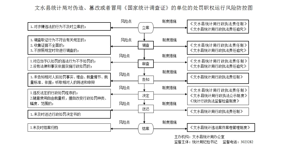 1.对巡查、举报、移送、交办的统计违法行为或案件不进行现场检查核实的;2.对统计违法行为不及时立案、及时审批的;3.统计部门对立案的案件,调查取证行为不符合有关规定的,收集证据不全面的,不按照规定时效进行调查的; 4.在对统计案件进行审查时,对应当予以处罚的违法行为不予处罚的;没有法律和事实依据实施行政处罚的;违反法定的行政处罚程序的;随意使用自由裁量权,擅自改变行政处罚种类、幅度、范围的;5.在告知行政处罚当事人时,符合听证条件、当事人要求听证,应予组织听证而不组织听证的;6.作出行政处罚决定时,违反“罚缴分离”规定,擅自收取罚款的;对当事人进行罚款不使用法定单据的;7.在统计处罚执行阶段,私分、挪用、截留、非法占用罚款的;因处罚不当给当事人造成财产损失等不良后果的;在行政处罚过程中滥用职权、玩忽职守、徇私舞弊和收受贿赂等情形的; 8.统计人员违反保密义务,泄露商业秘密、个人信息或者提供、泄露在执法检查中获得的能够识别或者推断单个统计调查对象身份的资料,造成损害的或经济损失的; 9.其他违反法律法规规章文件规定的行为。 |