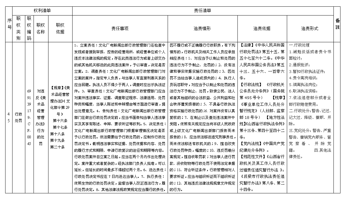 文水县文化局行政处罚权力和责任清单
