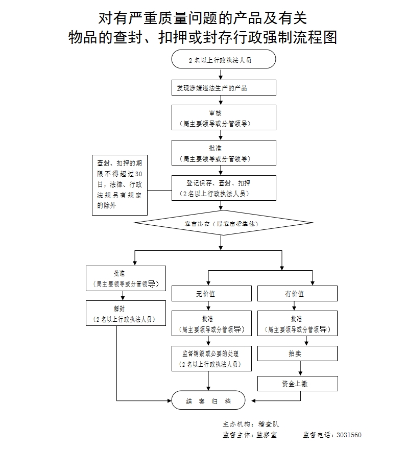 对有严重质量问题的产品及有关物品的查封、扣押或封存 |