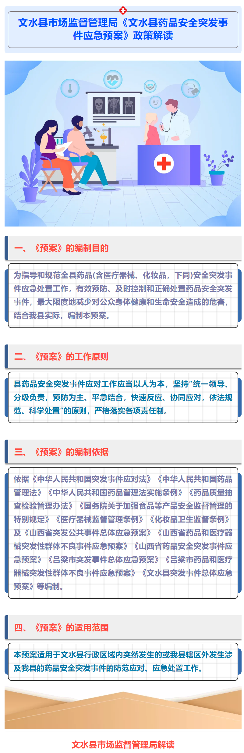 本预案适用于文水县行政区域内突然发生的或我县辖区外发生涉及我县的药品安全突发事件的防范应对、应急处置工作。